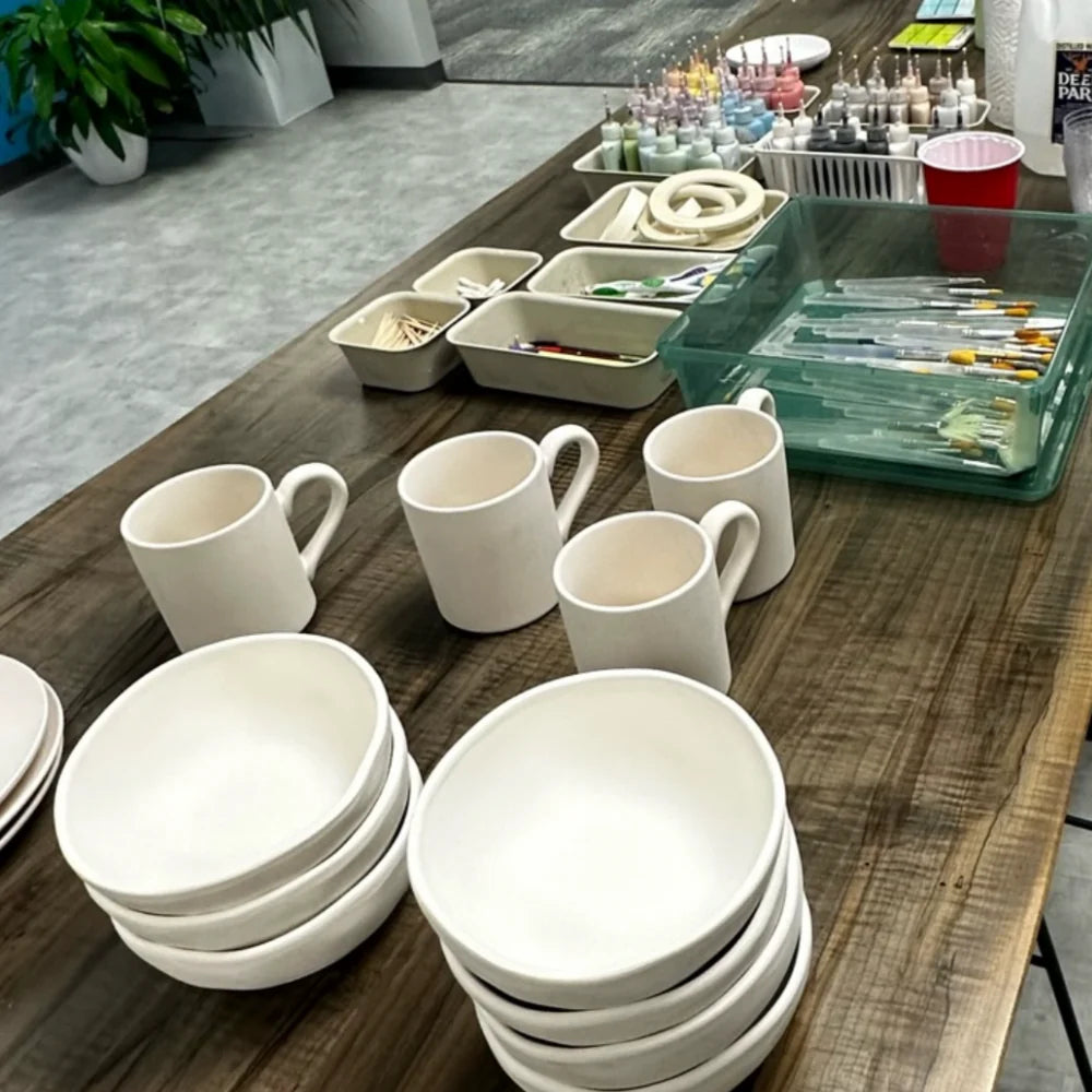 Just pick up pottery and paints to complete with your troop & drop them back off to be glazed & fired!